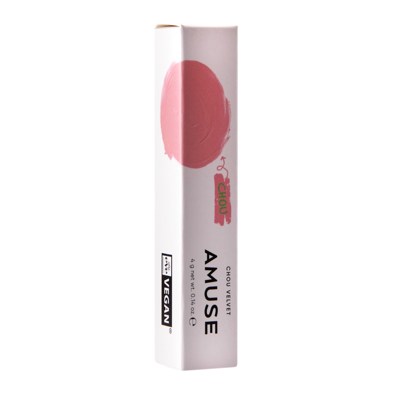 Amuse - Chou Velvet - 01 Boksoonga Chou - ajakfesték hidratáló formulával. Finom rózsaszín árnyalatú. Bársonyos, szaténos felületet eredményez az ajkakon. Simító és enyhén elmosódó hatást biztosít. Formulája hosszantartó és maszatolásálló. A fedés intenzitása a termék egymást követő rétegeinek hozzáadásával növelhető. A színező hialuronsavat és ceramidokat tartalmaz az ajakbőr hidratálása és táplálása érdekében, a termék kellemes és nem szárít. A kozmetikum vegán.