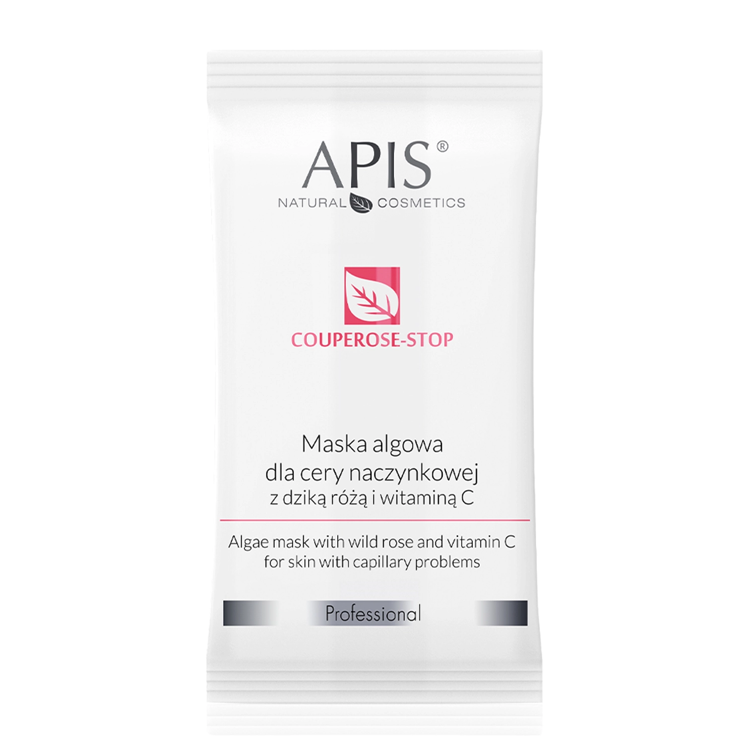 Apis - Couperose-Stop - Alga Maszk Hajszáleres Bőrre Vadrózsával és C-vitaminnal - alga maszk hajszáleres bőrre. Por alakú, amely víz hozzáadásával sűrű, sima krémet képez. Hidratáló alginátot és olyan összetevőket tartalmaz, mint a vadrózsa, az árnika kivonat és a C-vitamin, amelyek érerősítő hatásúak, valamint nyugtatják az érzékeny bőrt és antioxidáns védelmet nyújtanak. Natúr kozmetikum.
