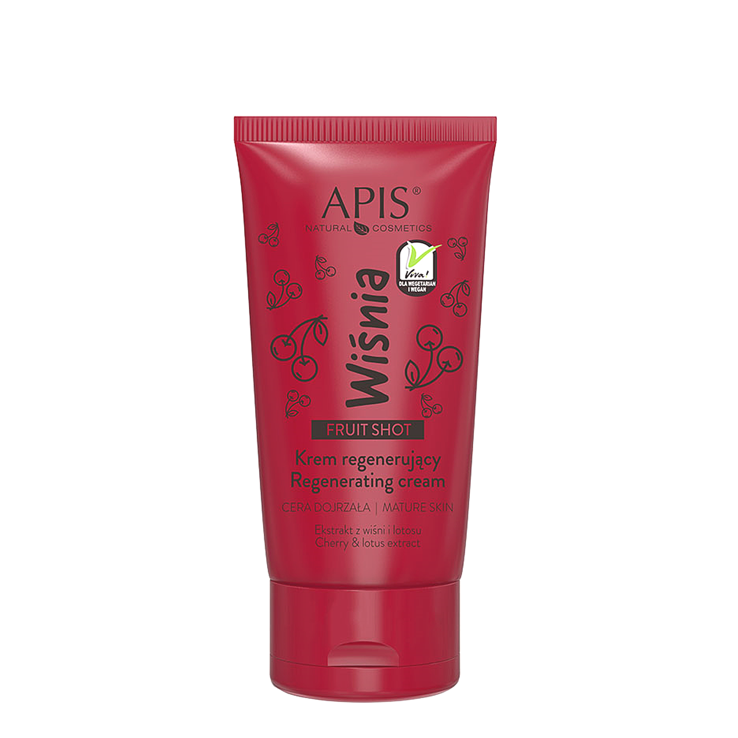 Apis - Regeneráló Krém Érett Bőrre - Meggy - bársonyos, regeneráló hatású krém száraz és érett bőrre. Meggykivonatot tartalmaz a bőr tónusának kiegyenlítésére, Q10 koenzimet a bőr rugalmasságának javítására és a ráncok megjelenésének csökkentésére, valamint shea vajat a bőr táplálására és simítására. Meggy illatú, natúr összetevőkből készült és vegánok számára is alkalmas.