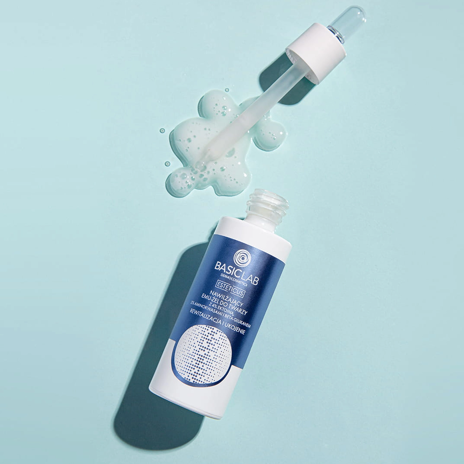 BasicLab - Esteticus - Revitalizáció és Bőrnyugtatás – hidratáló és revitalizáló hatású arcszérum. A termékben található ektoin, glükonolakton, aminosavak és trehalóz erőteljes és hosszan tartó hidratációt biztosítanak a bőrnek. A ceramidok támogatják a hidrolipid gát újjáépítését és védelmét, míg a béta-glükán hatékonyan csillapítja az irritációkat és nyugtatja a bőrt. A szérum tejszerű, emulziós állagú, gyorsan felszívódik, azonnal hidratált, ragyogó bőrt eredményez. Az érzékeny, száraz, érett, de akár zsíros vagy problémás bőr számára is ideális. Hatékonyan csillapítja az irritációkat, visszaadja a komfortérzetet és a bőr puhaságát.
