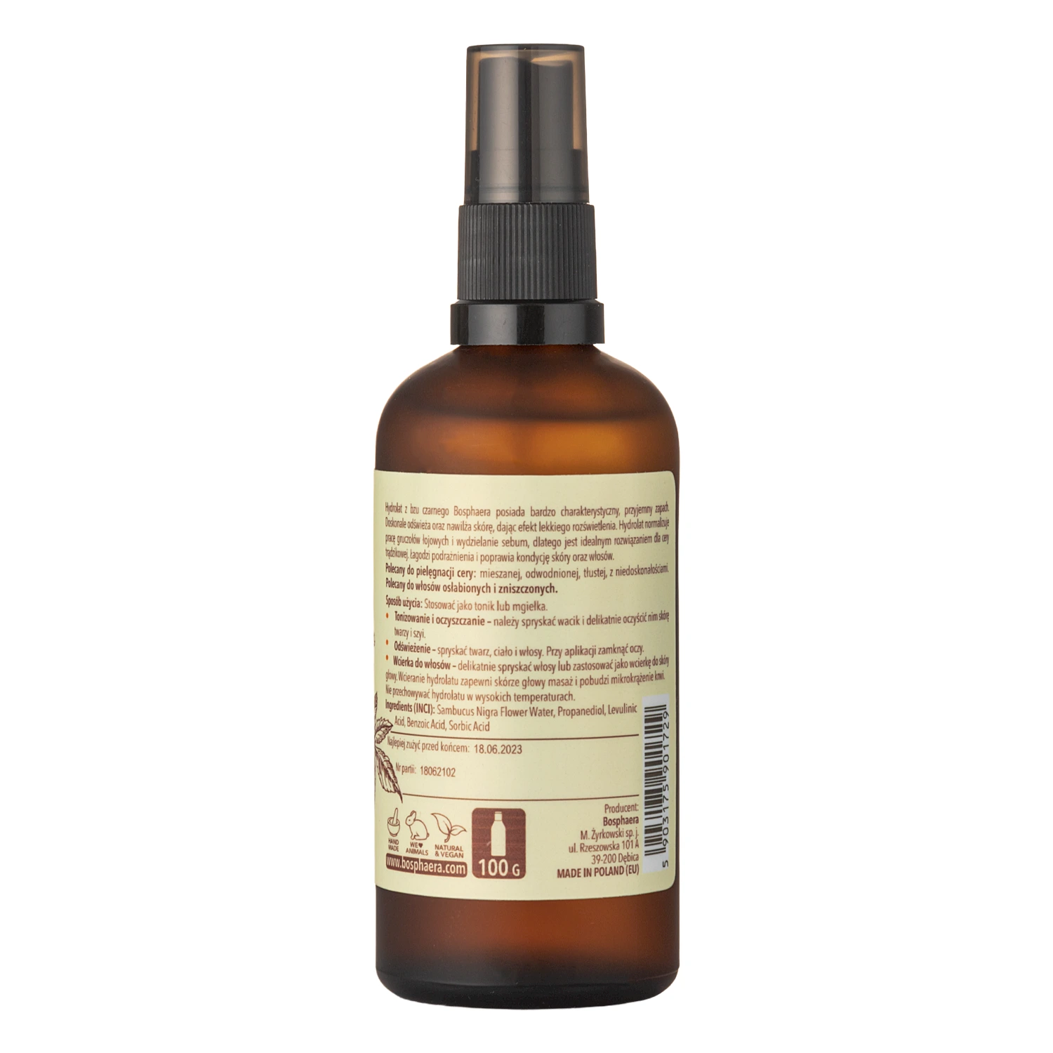 Bosphaera - Bodzavirág Hidrolatum - egy hidrolátum, amely számos bőrtípus igényeit kielégíti. Hatékonyan kiegyenlíti a bőrtónust, csillapítja a gyulladást és az irritációt, valamint hidratál. Antiszeptikus tulajdonságokkal rendelkezik, és véd a szabad gyökök károsító hatásaival szemben. A termék természetes eredetű és less-waste összetevőkkel készült.