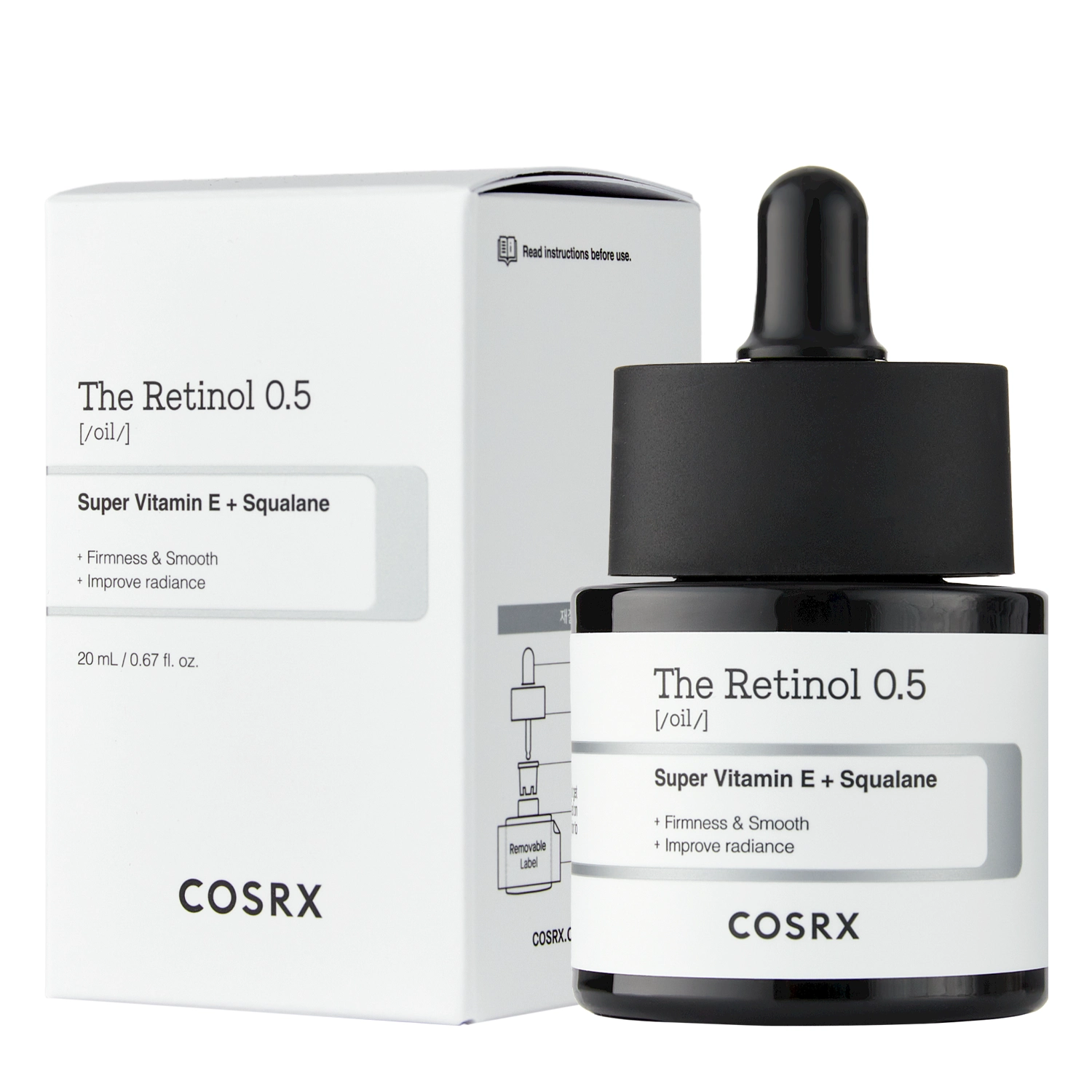 Cosrx - The Retinol 0.5 Oil - Öregedésgátló arcszérum. 0,5% retinolt tartalmaz, amely serkenti a kollagén termelődését, ezáltal csökkenti a ráncok mélységét, valamint egységesíti a bőr tónusát és csökkenti a tökéletlenségeket. A szkvalán és a szójaolaj hozzáadása újjáépíti a bőr védőrétegét és kellemes tapintásúvá teszi a bőrt. A készítményben található E-vitamin az antioxidáns hatásért felelős. A termék olajos állagú.
