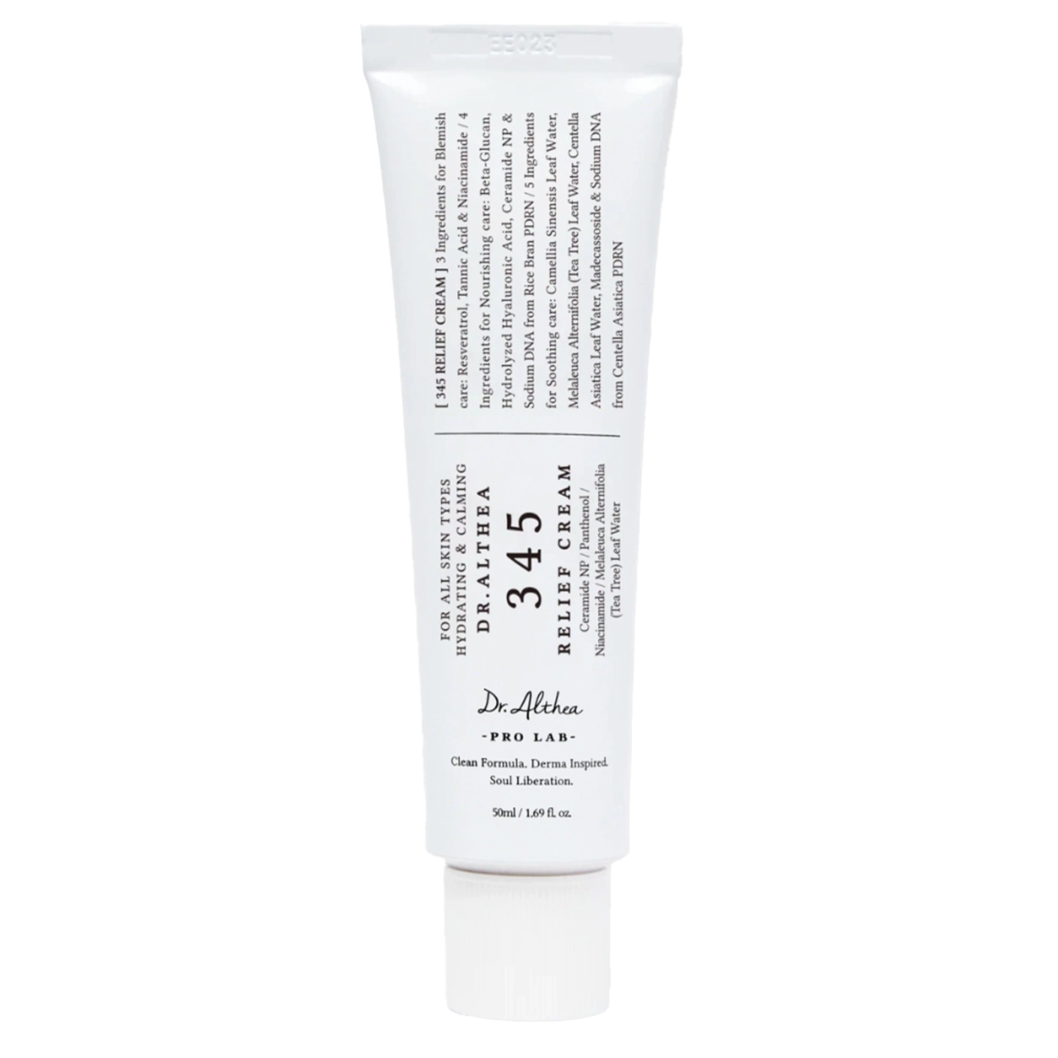 - 345 Relief Cream – könnyű, regeneráló krém mindennapi arcbőrápoláshoz. Többek között rezveratrol, ázsiai gázló levélkivonat, panthenol és nátrium-hialuronát tartalmának köszönhetően hatékonyan támogatja a bőr regenerációját, miközben visszaadja a hidratációt, puhaságot, valamint kellemes komfortérzetet biztosít. Kiszerelés: 50ml.