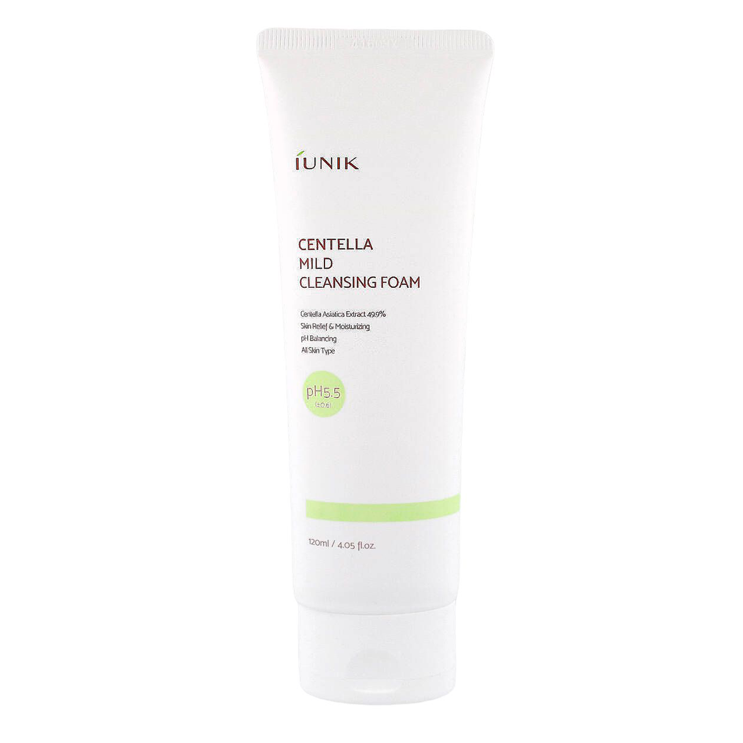 iUNIK - Centella Mild Cleansing Foam - gyengéd arctisztító hab, minden bőrtípusra. Centella asiatica kivonatot tartalmaz, amely csillapítja az irritációkat és serkenti a regenerációs folyamatokat. Az allantoin támogatja a bőrnyugtató hatását, a panthenol pedig hidratálja, puhává és rugalmassá teszi a bőrt, valamint javítja a hidrolipid gátat. Emellett a készítmény szalicilsavat is tartalmaz, amely megakadályozza a foltok kialakulását és szabályozza a faggyútermelést. A fenyőolaj hozzáadása antibakteriális és gyulladásgátló tulajdonságokkal rendelkezik. A kozmetikum pH-értéke 5,5.