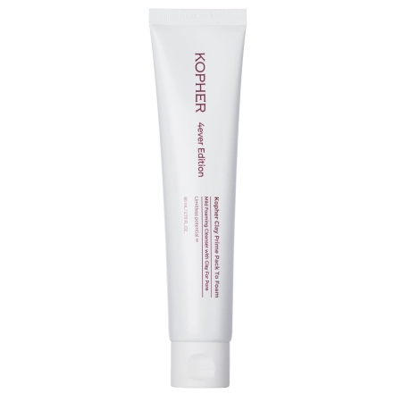 KOPHER - Clay Prime Pack To Foam – egy arctisztító hab, amely expressz tisztító maszkként is használható zsíros és problémás bőrre. A formula növényi kivonatokat tartalmaz, mint például ázsiai gázló, közönséges kamilla és japán lonc kivonat. Ezek kombinációja csökkenti a bőr gyulladását és a bőrpírt, amely a bőrproblémákat kíséri. A névadó agyag felszívja a felesleges faggyút, az Anti-Sebum P összetevővel együtt mattítja a bőrt és csökkenti a faggyúmirigyek túlzott aktivitását. A termék használata után a bőr tiszta, sima és matt lesz, a kitágult pórusok pedig összehúzódnak.