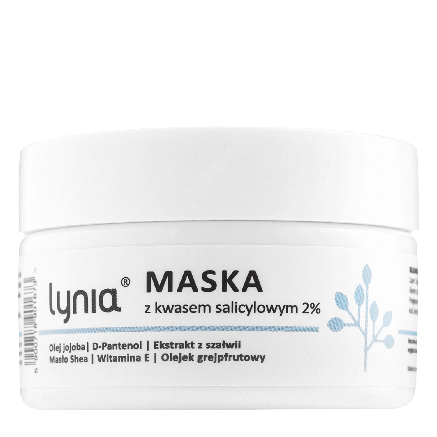 Lynia - 2%-os Szalicilsavas Maszk - szennyezett, szeborreás, pattanásos bőrre kifejlesztett termék. Jojobaolajat és sheavajat tartalmaz, amelyek hatékonyan védik a szárazság ellen, puhítják a bőrt és enyhítik a irritációt. A BHA-savak csoportjába tartozó szalicilsav oldódik a zsírokban, aminek köszönhetően tökéletesen tisztítja a faggyúmirigyek száját, emellett gyulladáscsökkentő tulajdonságokkal rendelkezik, és felgyorsítja az ekcémák gyógyulását. A készítmény az antioxidáns E-vitamin-t is tartalmazza, amely lassítja a bőr öregedési folyamatát és megakadályozza a gyulladást. A grapefruitolaj viszont csökkenti a faggyúkiválasztást, antibakteriális és normalizáló hatású.