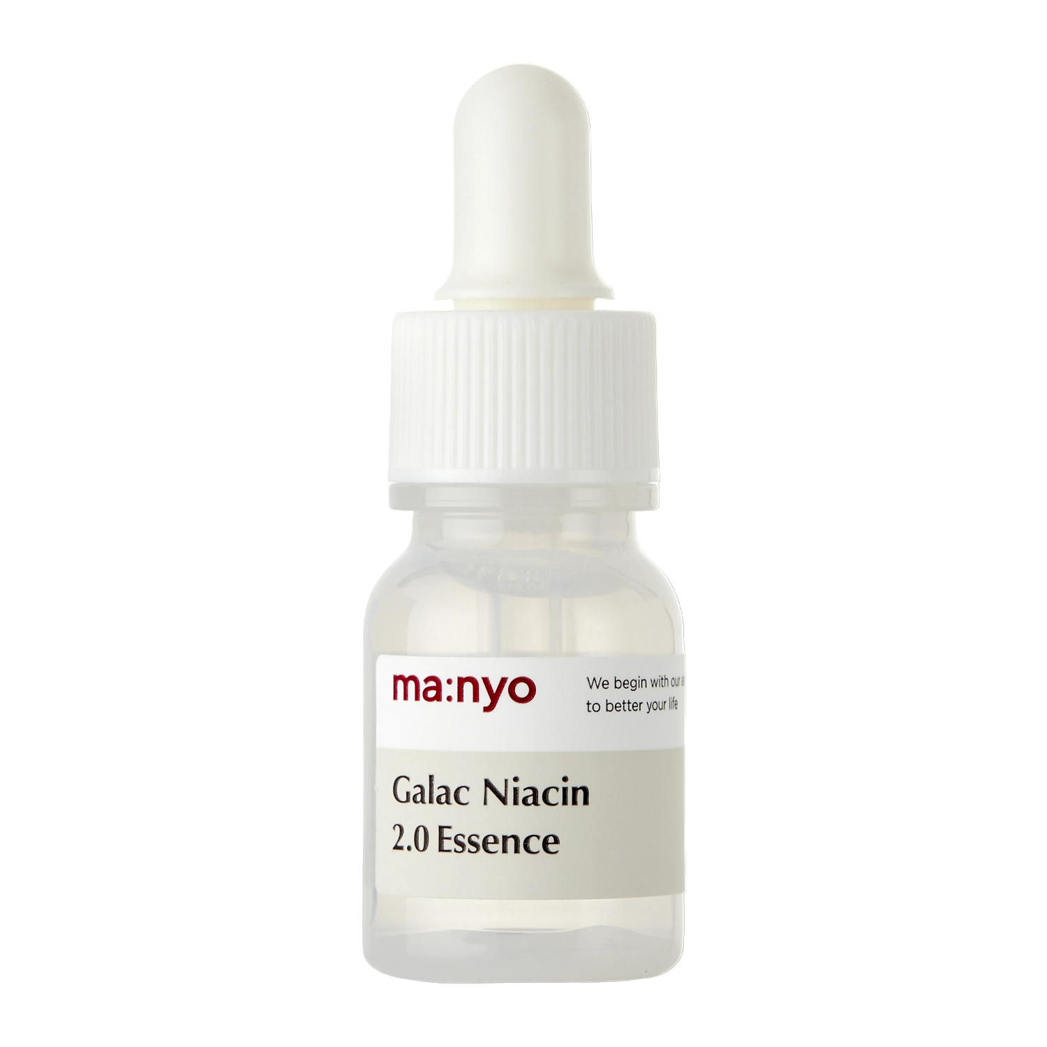 Ma:nyo - Galac Niacin 2.0 Essence - egy arcápoló esszencia. 93,69% Galactomyces élesztő-szűrletet tartalmaz, amely hidratál, puhít és minimalizálja az irritációkat. A 4% niacinamid és glutation hozzáadása gyulladáscsökkentő és világosító hatású, így csökkenti a hiperpigmentáció megjelenését és kiegyenlíti a bőr tónusát. Ezt egészíti ki a panthenol és a nátrium-hialuronát, amelyek erősen hidratáló és regeneráló hatásúak, valamint javítják a bőr tónusát.