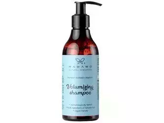 Mawawawo - Volumizing Shampoo - Volumennövelő Sampon - Tisztító termék, amely megemeli a hajat a hajtöveknél, növeli a kezelhetőséget és meghosszabbítja a haj és a fejbőr frissességét. A természetes aminosavak hidratálják és egészségesen tartják a fejbőrt, míg a len- és chiamag poliszacharidok megerősítik a szálakat, így azok könnyebben kezelhetővé válnak és megakadályozzák a csomósodást. A gyümölcsecet és fitinsav visszaállítja a természetes fényt. Mosás után a haj laza és könnyű. Ez a termék vegán és 95,5%-ban természetes eredetű összetevőket tartalmaz.