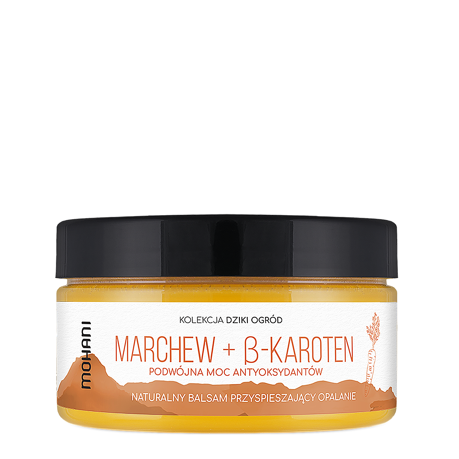 Mohani - Barnulást Gyorsító Természetes Sárgarépabalzsam - arcon és az egész testen használható többfunkciós balzsam. Felgyorsítja a bőr barnulását, emellett számos antioxidánst is tartalmaz, amelyek védik a bőrt a szabad gyökök ellen. Többek között az antioxidáns tulajdonságokkal rendelkező béta-karotin és sárgarépa-kivonat kiegyenlíti a bőr tónusát és lassítja az öregedési folyamatokat. A karotinoidok melanin termelésére serkentik a sejteket, amelyek gyengéden és egyenletesen sötétítik a bőrt. A sárgarépamag-olaj regeneráló, puhító, rugalmasító és revitalizáló hatású. A sheavaj és a napraforgóolaj viszont hidratálja és táplálja a bőrt. Az E-vitamin véd a szabad gyökök ellen, növeli a bőr rugalmasságát és megakadályozza a korai öregedést. A balzsam mangó illatú, gyorsan felszívódik és nem hagy zsíros réteget. A termék természetes és vegán.