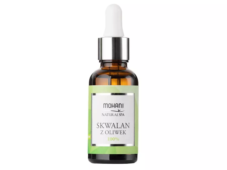 Mohani - Olive Squalane - A szkvalán jelentősen befolyásolja a reggeli és esti ápolásban használt más kozmetikumokból származó aktív vegyületek penetrációját. Gyorsan regenerálja a bőrt, nyugtatja és enyhíti az irritációt. Minden bőrtípusra alkalmas, mivel nincs komedogén hatása. A száraz, kipirosodott, érzékeny és vékony bőrnek különösen jót tesz.