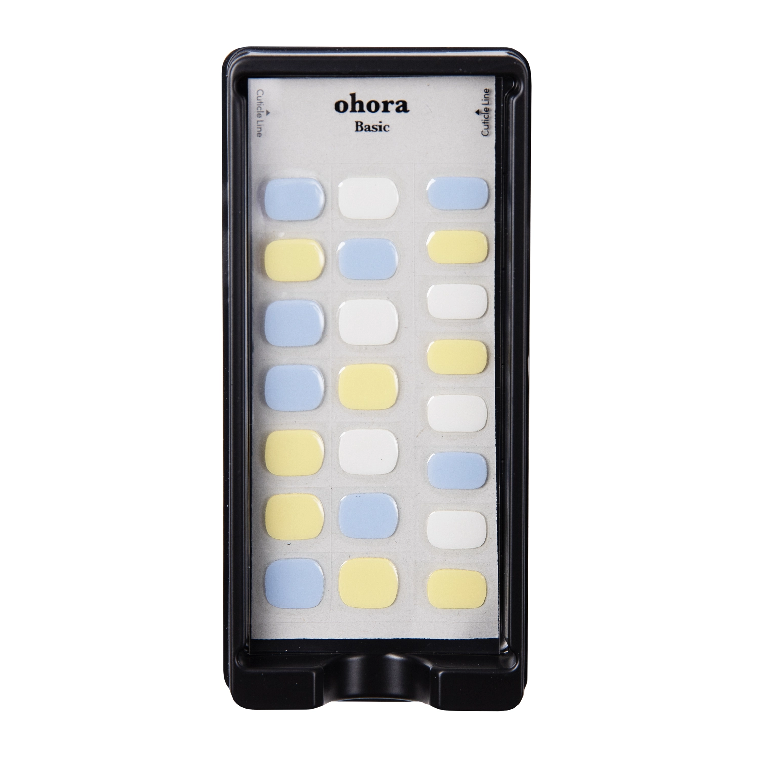 Alkalmazási mód: Válaszd ki a köröm méretének megfelelő matricát. Húzd le a matricát a lapról, ne feledd eltávolítani a védőfóliát. Vidd fel a körömre, simítsd el, vágd körömcsipesszel vagy ollóval a köröm hosszára. Ezután formázd meg reszelővel, és 45 másodpercig keményítsd az Ohora UV-LED lámpa alatt.