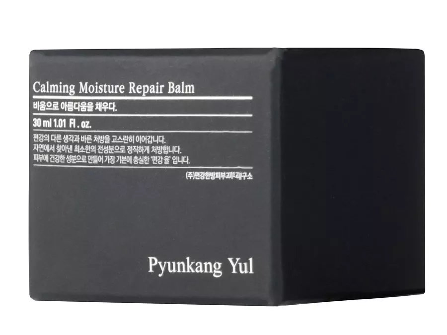 Pyunkang Yul - Calming Moisture Repair Balm - egy balzsam, amely hidratálja és regenerálja a bőrt, csillapítja a bőrpírt és az irritációkat. Tartalmaz szkvalánt, amely nedvességet biztosít a bőrnek, valamint trehalózt, amely megtartja a vizet a felhámban. A krémben található hialuronsav ötféle formájából álló komplex szintén hidratáló hatású, megköti a vizet a bőrben. A teafa kivonat antibakteriális védelmet nyújt, felgyorsítja a sebgyógyulást, az ázsiai gázló kivonat pedig enyhíti az irritációkat. A balzsamot peptidekkel is gazdagították, amelyek serkentik a bőrt a kollagén és elasztin termelésére. A készítmény minden összetevője EEC tanúsítvánnyal rendelkezik.