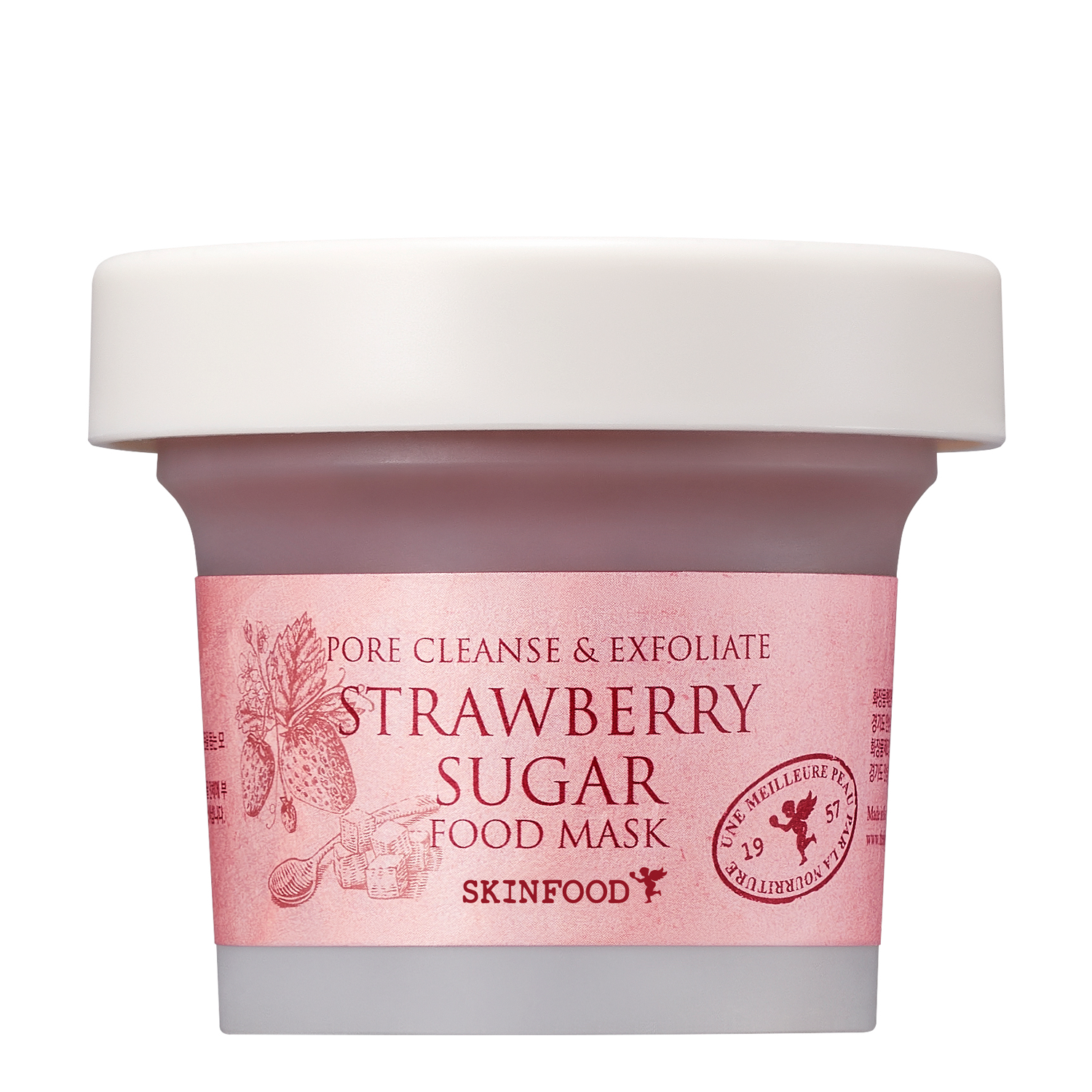 Skinfood - Strawberry Sugar Food Mask - eper kivonat tartalmú cukros arcmaszk. A készítményben lévő kristálycukor hámlasztja az elhalt hámsejteket, ami simább és ragyogóbb bőrt eredményez. Az édesgyökér kivonat értékes antioxidáns tulajdonságokkal rendelkezik és elősegíti a bőr regenerálódását, míg a sheavaj intenzíven táplálja a bőrt.